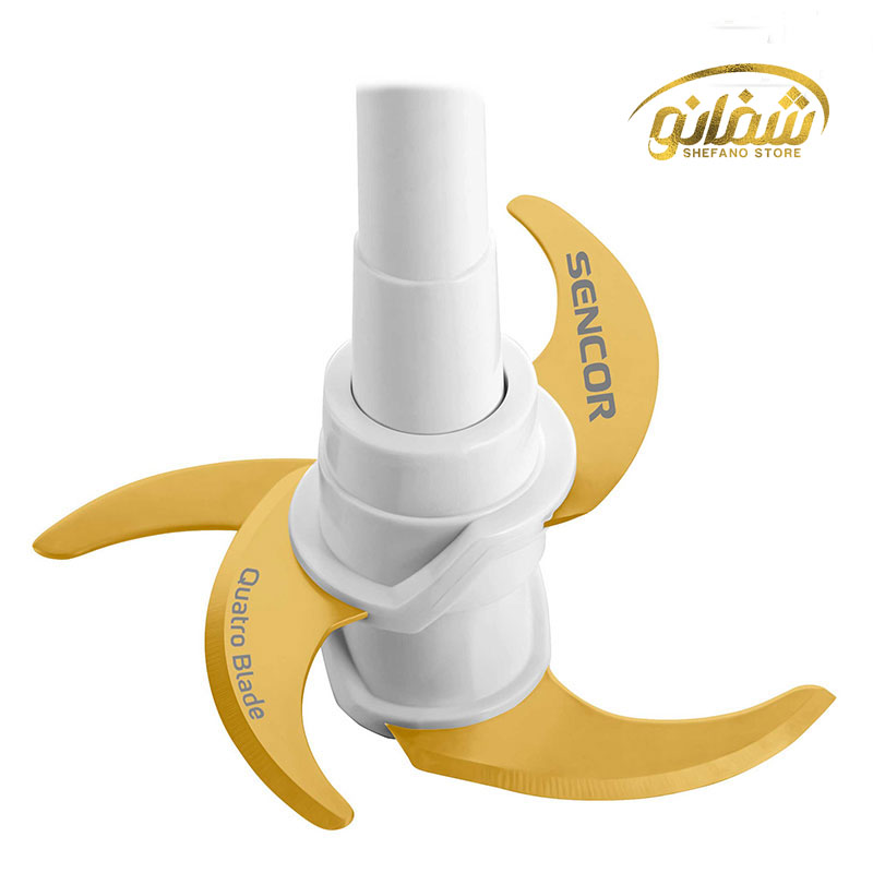 رنگ طلایی تیغه ها به ما از جنس تیتانیومی تیغه ها خبر می دهد. تیغه های تیتانیومی بسیار بهتر از تیغه های استیل و فولاد عمل می کنند. این تیغه ها به مرور زمان برندگی و صافی خود را از دست نمی دهند. همچنین تیغه های تیتانیوم مقاومت زیادی در برابر گرم شدن دارند. اما اصلی ترین مزیت تیغه های تیتانیوم عدم اکسیداسیون و تلف شدن مواد مغذی میوه و سبزیجات است. این تیغه ها علاوه بر متریال ویژه ای که دارند از نظر طراحی کاملا مطابق با اصول و استاندارد خاص سنکور طراحی شده اند. طراحی خاص آنها در بالا رفتن راندمان و استحکام بالای آن ها نقش بسیار مهمی دارد.