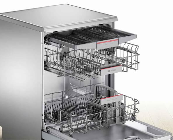 ماشین ظرفشویی بوش مدل SMS46NI10M سری 4 به رنگ استیل با ظرفیت 13 ساخت کشور ترکیه ظرفشویی بوش بوده و از لحاظ طراحی در گروه ماشین های ظرفشویی مبله قرار می گیرد.دارای ظاهری زیبا و مدرن است.ساخت کشور ترکیه به رنگ استیل با برچسب انرژی ++A که نشان دهنده کارکرد بهینه دستگاه بوده و از طرفی مصرف انرژی مناسب و بصرفه آن را نشان می دهد. در هر چرخه شستشو تنها 0.896 کیلووات ساعت انرژی مصرف می کند. به علاوه مصرف انرژی سالیانه این دستگاه به 251 کیلووات ساعت می رسد. در هر دوره شستشو 9.3 لیتر آب مصرف می کند.مصرف آب سالیانه این دستگاه نیز برابر با 2604 لیتر می باشد.ظرفیت این ماشین ظرفشویی بوش 13 نفره می باشد .میزان صدای دستگاه 44 دسیبل می باشد.دارای عرض 60 سانتیمتر، عمق 60 سانتیمتر و ارتفاع 84.5 سانتیمتر وزن 52 کیلوگرمی و برای آشپزخانههای بزرگ و متوسط گزینه ایده آل برای خریداری خواهد بود.